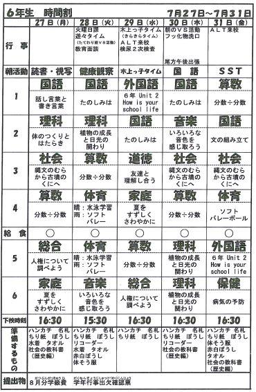 週時程表 浦添小学校ホームページ