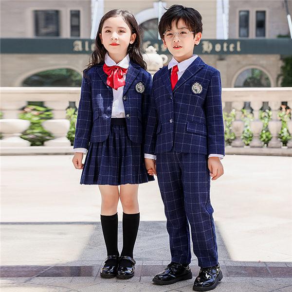 5点セット 捧呈 卒業式 スーツ 入学式 女の子 男の子 チェック柄 制服 紺 カジュアル 小学生 中学生 フォーマル 90 180cm キッズ 子供スーツ ジュニアスーツ 卒業式服